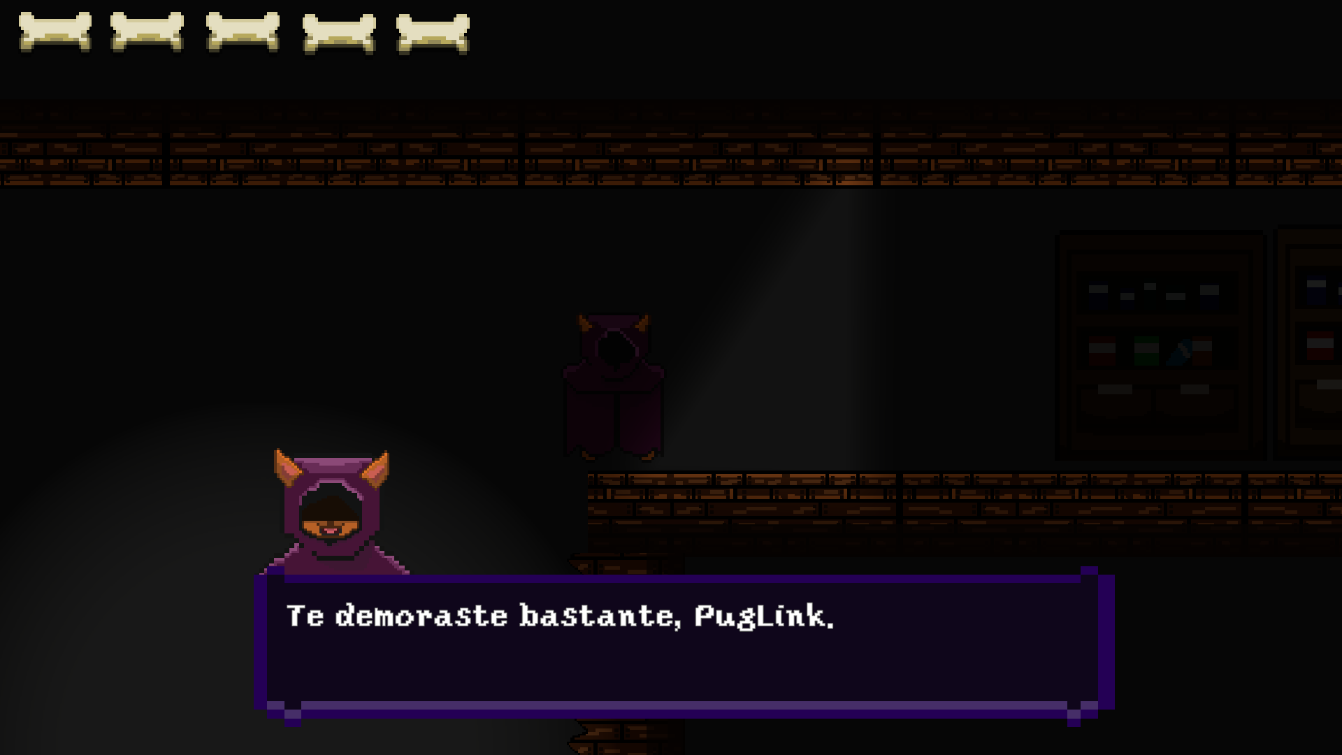 In this moment PugVania is only avaible in spanish, im learning how to make a language section to switch between english and spanish, so, it will ve avaiable as soon as posible <3